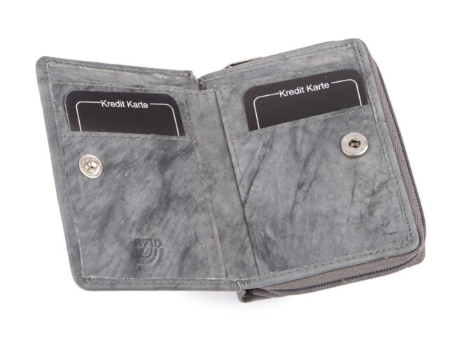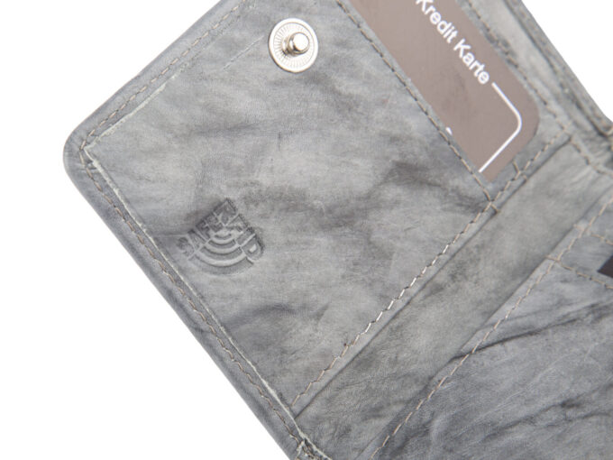 - Portfel z ochroną kart zbliżeniowych RFID. Dzięki zabezpieczeniu RFID karty zbliżeniowe znajdujące się wewnątrz portfela są chronione przed dostępem z zewnątrz bez naszej wiedzy.