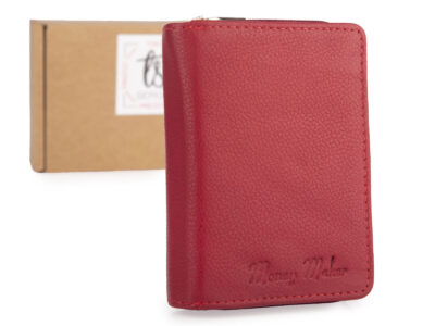 Mały czerwony portfel damski z miękkiej skóry naturalnej z ochroną RFID Money Maker