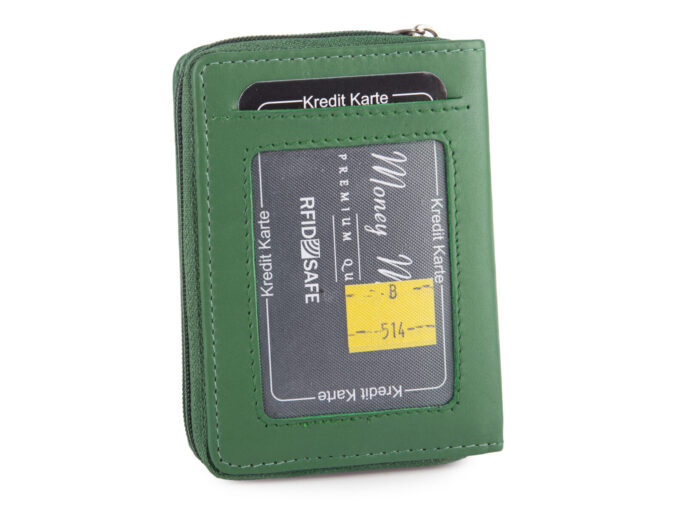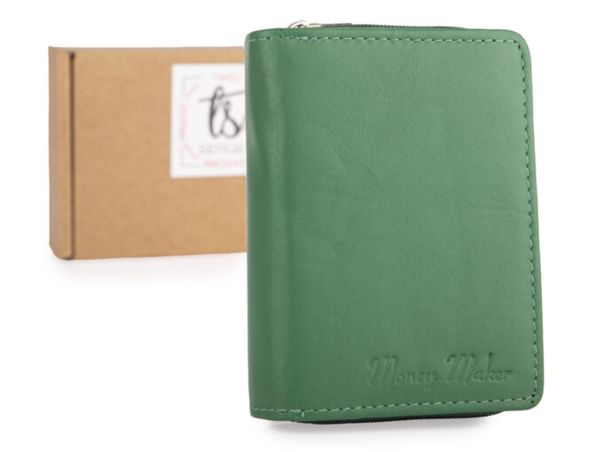 Mały zielony portfel damski z miękkiej skóry naturalnej z ochroną RFID Money Maker