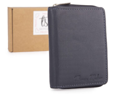 Mały granatowy portfel damski z miękkiej skóry naturalnej z ochroną RFID Money Maker