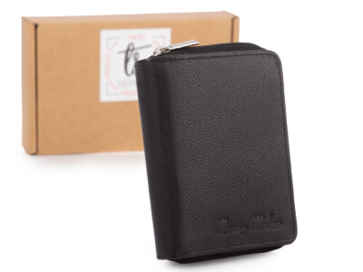 Mały portfel damski uszyty z miękkiej skóry naturalnej w kolorze czarnym