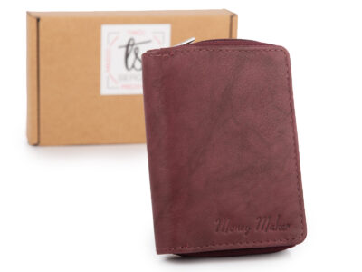 Mały portfel damski uszyty z miękkiej skóry naturalnej w kolorze burgundowym