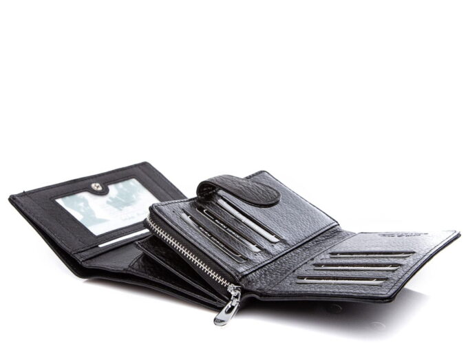 - Portfel wyposażony w ochronę RFID – chroniącą karty zbliżeniowe przed nieautoryzowanym dostępem.