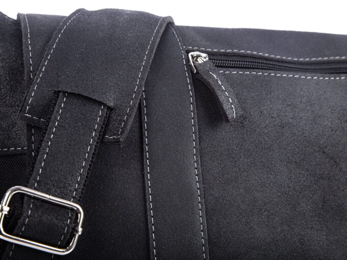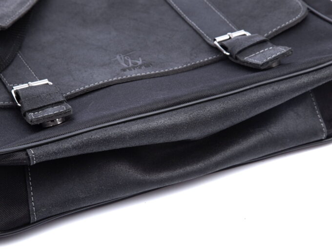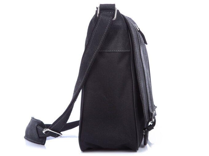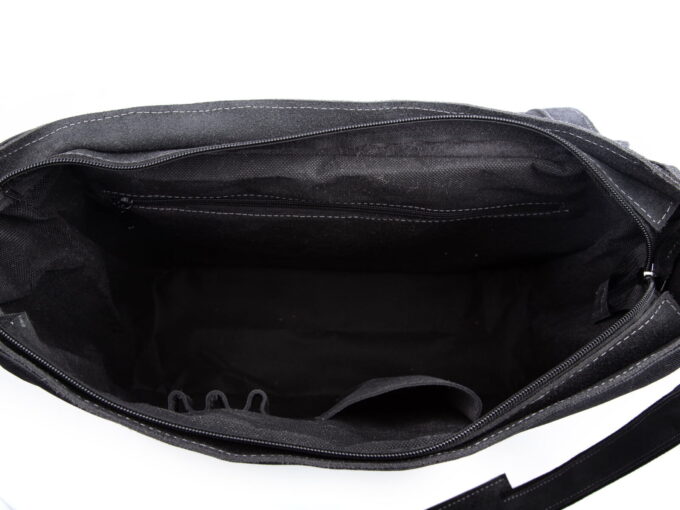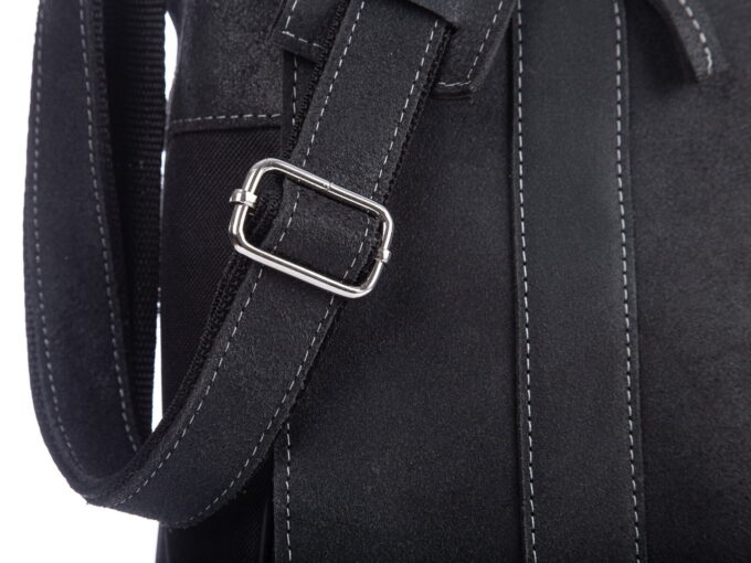 - Komora główna torby stworzona jest z mocnego canvasu w kolorze czarnym ze skórzanymi wstawkami.