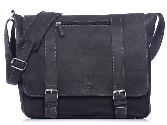 Męska torba skórzana z klapą – dla studenta i do pracy czarna SERGEJ