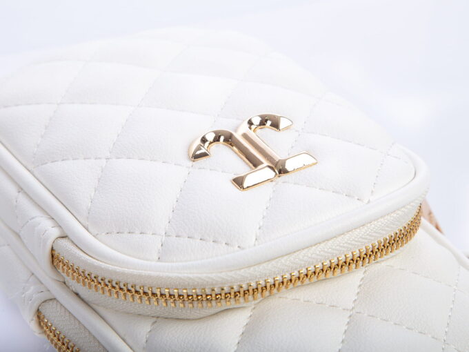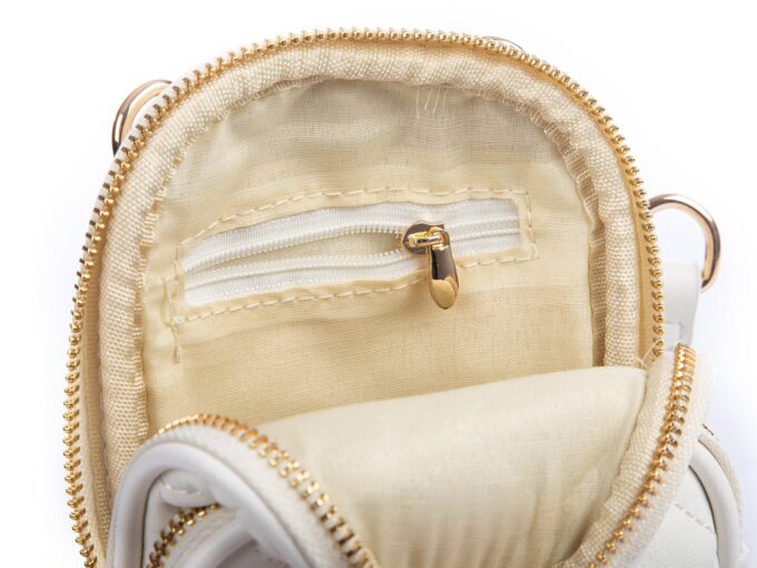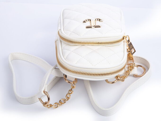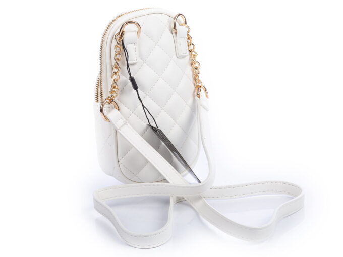 • Mini-torebka damska pikowana w kolorze białym.