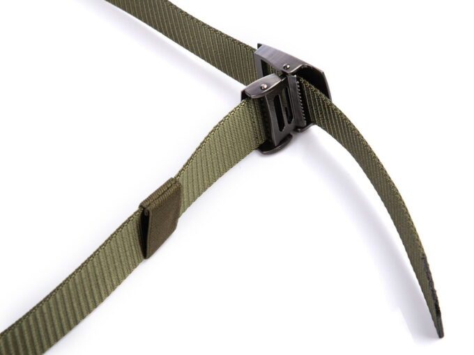 - Pas wykonany jest z bardzo mocnej taśmy polipropylenowej o grubości aż 0.2 cm, wykorzystywanej do produkcji profesjonalnych pasków wojskowych i taktycznych.