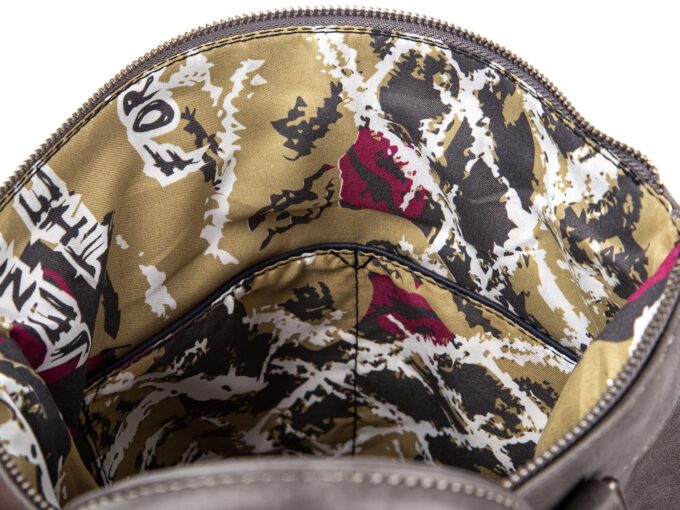 Pojemny plecak trekkingowy z wstawkami ze skóry naturalnej Harold’s moro