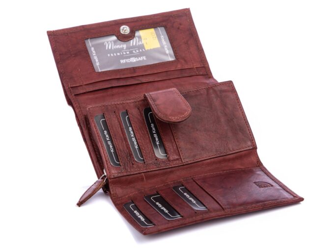 Portfel damski czerwony z matowej skóry naturalnej duży Money Maker