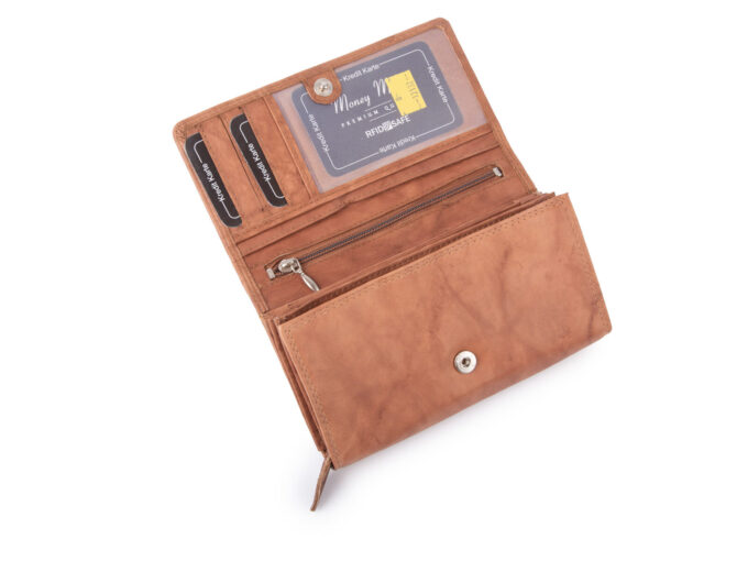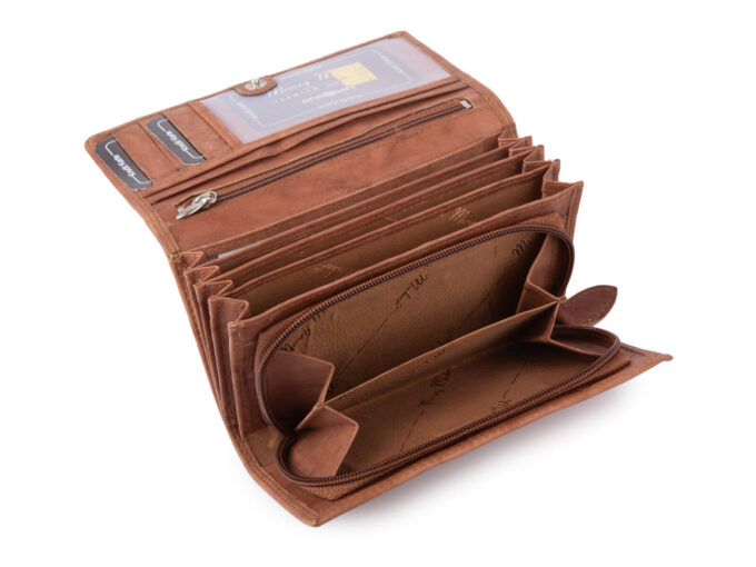 Money Maker Portfel damski skórzany duży jasny brąz