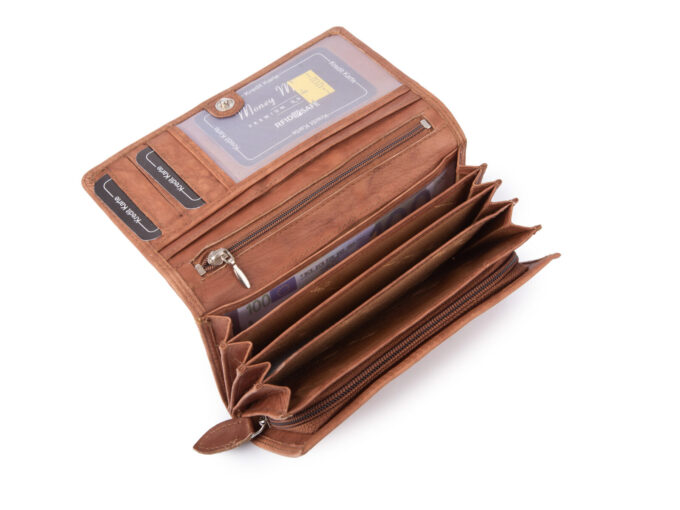 - Dodatkowa kieszeń zapinana na zamek wewnątrz portfela.