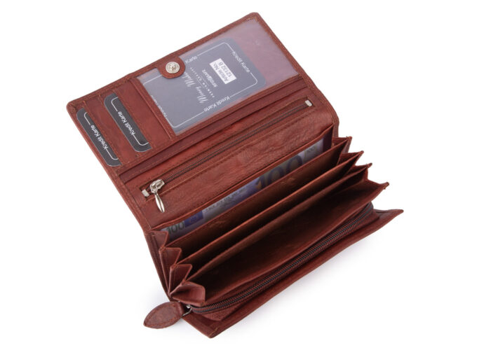 - 4 pojemne, szerokie przegrody na banknoty.