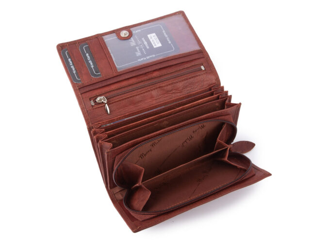 Money Maker Portfel damski skórzany duży ciemnobrązowy