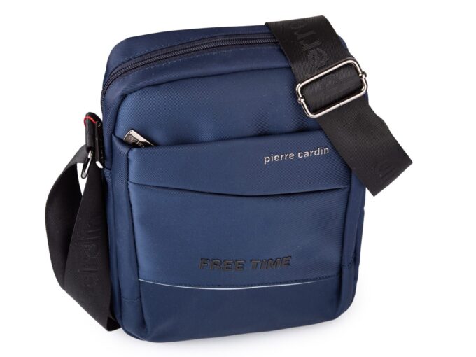 - Ciemnoniebieska torba męska na ramię renomowanej marki Pierre Cardin w wygodnym, średnim rozmiarze, idealna na co dzień.