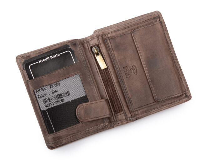 - Portfel wyposażony jest w ochronę kart zbliżeniowych RFID.