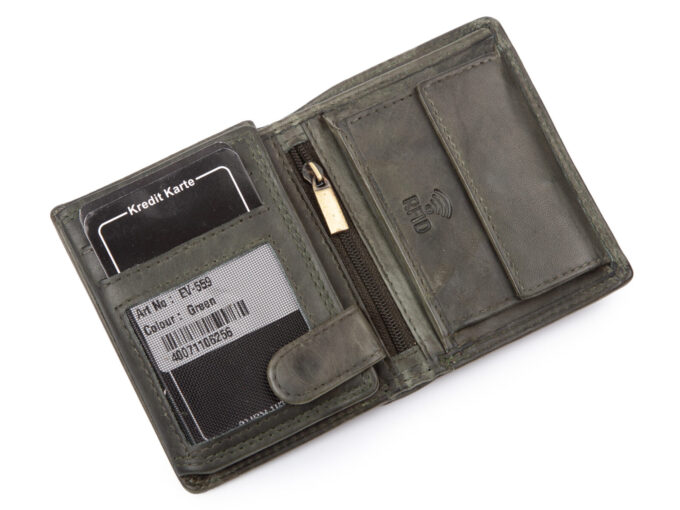 - Portfel wyposażony jest w ochronę kart zbliżeniowych RFID.