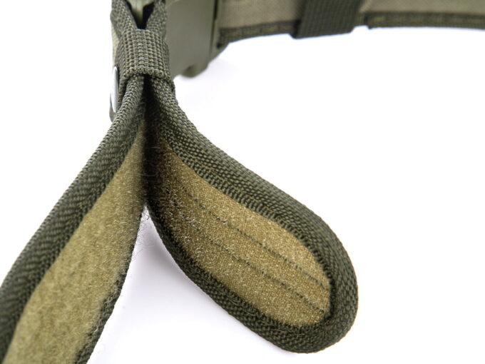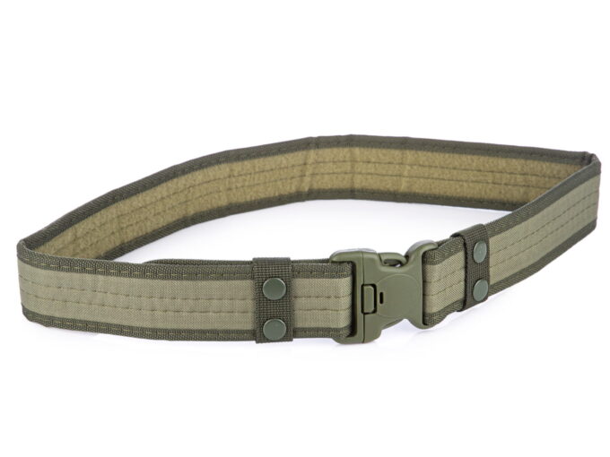- Wytrzymały, szeroki pas taktyczny w kolorze zielonym.
