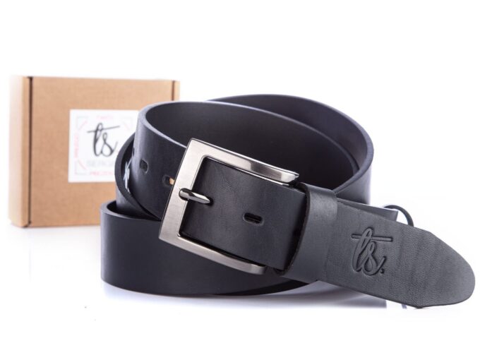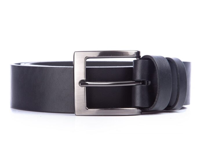 Pasek męski do spodni z grubej skóry naturalnej czarny SERGEJ 115 cm