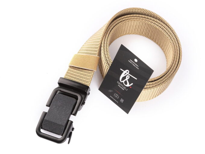 Pasek męski z klamrą automatyczną parciany beżowy SERGEJ KAMPALA