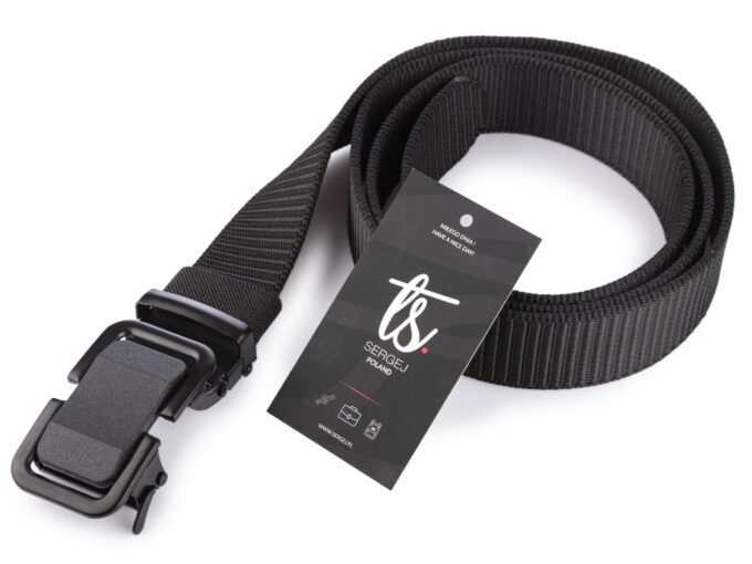 Pasek parciany męski czarny z klasyczną klamrą SERGEJ FIBER