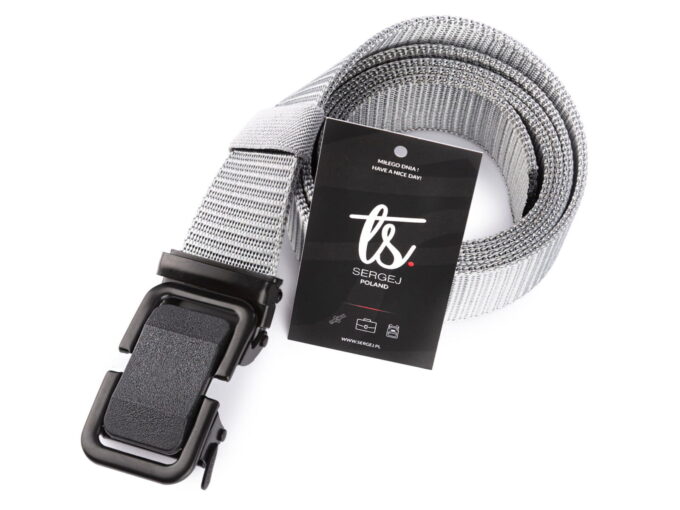 Pasek męski z klamrą automatyczną parciany szary SERGEJ KAMPALA