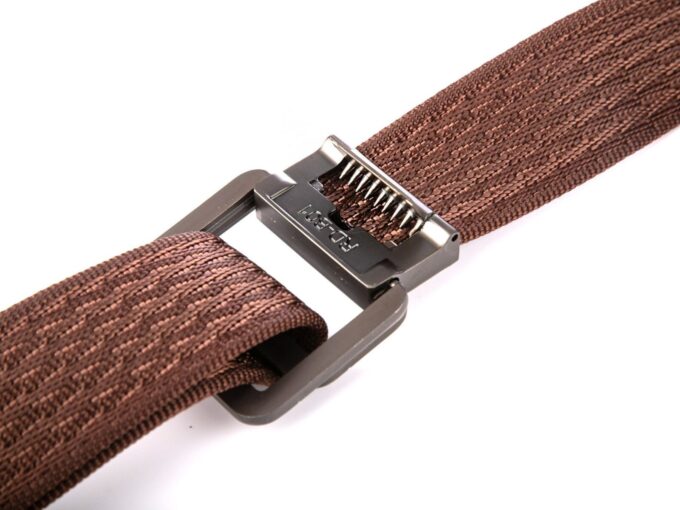 - Klamra ma prostą ale sprawdzoną konstrukcję, wystarczy przełożyć parciany pas przez dwa metalowe elementy na żądaną długość i pociągnąć aby pas się zacisnął i mocno trzymał uniemożliwiając przesuwanie i poluzowanie. Dzięki temu zapinanie i odpinanie paska jest szybkie, proste i praktyczne.