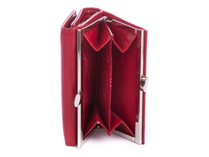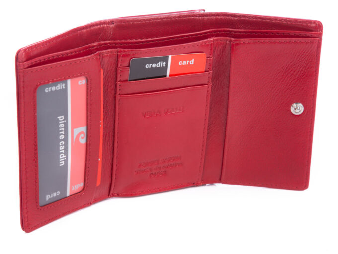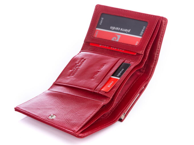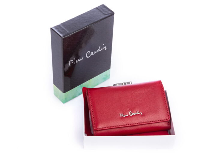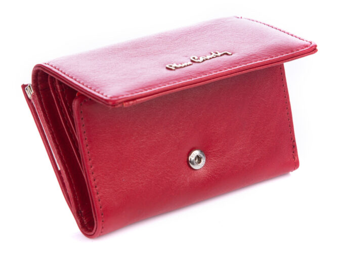 Pierre Cardin czerwony gładki portfel damski z biglem