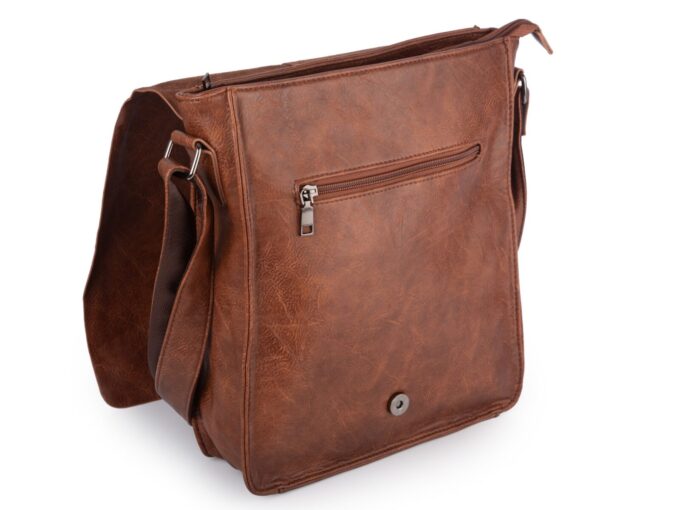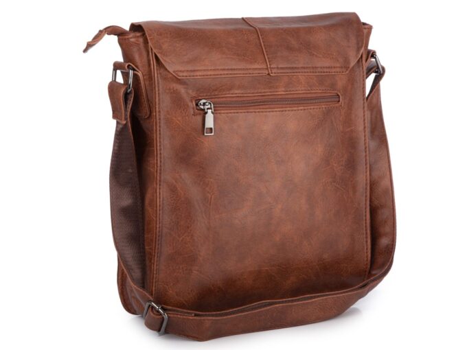 Pionowa, brązowa torba męska na ramię A4 z klapą