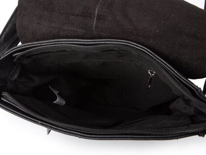 - Dodatkowa kieszeń zapinana na zamek znajduje się z tyłu. Podczas noszenia torby na ramieniu kieszeń ta przylega do naszego ciała zabezpieczając do niej dostęp bez naszej wiedzy.