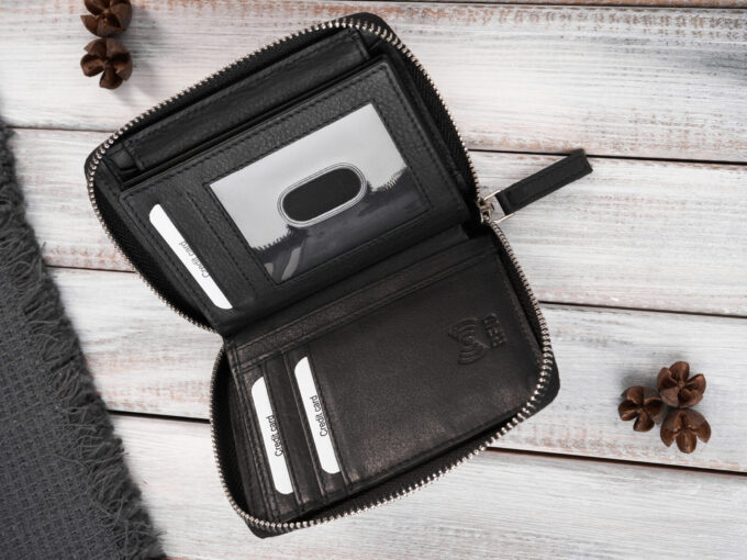 - Portfel wyposażono także w ochronę zbliżeniowych kart RFID.