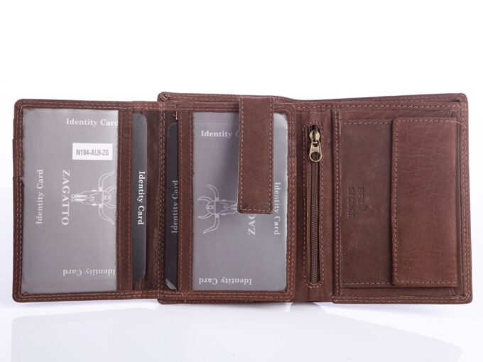 Pionowy portfel męski brązowy RFID ZAGATTO