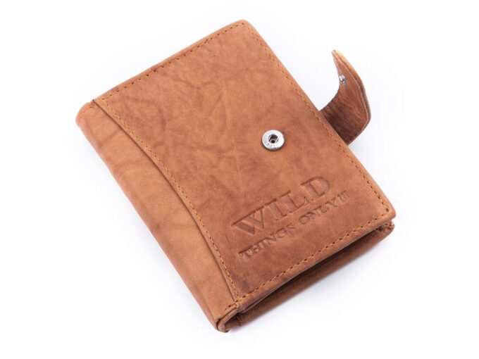 Pionowy portfel męski skórzany jasnobrązowy zapinany na zatrzask WILD