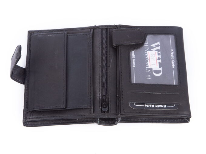 Pionowy portfel męski skórzany czarny zapinany na zatrzask WILD