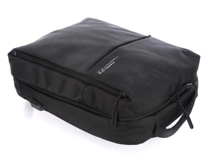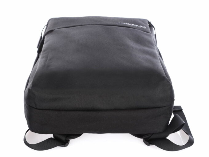 Model wykonano z eleganckiego, gładkiego i usztywnionego materiału w czarnym kolorze. Szczególnie warto zwrócić uwagę na minimalistyczny wygląd modelu. Wszystkie zamki, uchwyty i logotyp rozmieszczono w taki sposób aby dostarczyć produkt o eleganckim i stonowanym wyglądzie w którym wszystkie elementy idealnie ze sobą współgrają. Plecak stworzono w prostokątnym kształcie. Niesie to za sobą wiele zalet. Po pierwsze, rezygnując z zaokrąglonych kształtów udało się zmniejszyć wysokość plecaka bez uszczerbku na jego pojemności. Zazwyczaj wszystkie zaokrąglone przestrzenie w plecakach i tak są nie wykorzystywane. Taki, prostokątny układ dodaje również profesjonalnego i biznesowego wyglądu. Plecak mogą używać zarówno studenci, uczniowie jak i biznesmeni.