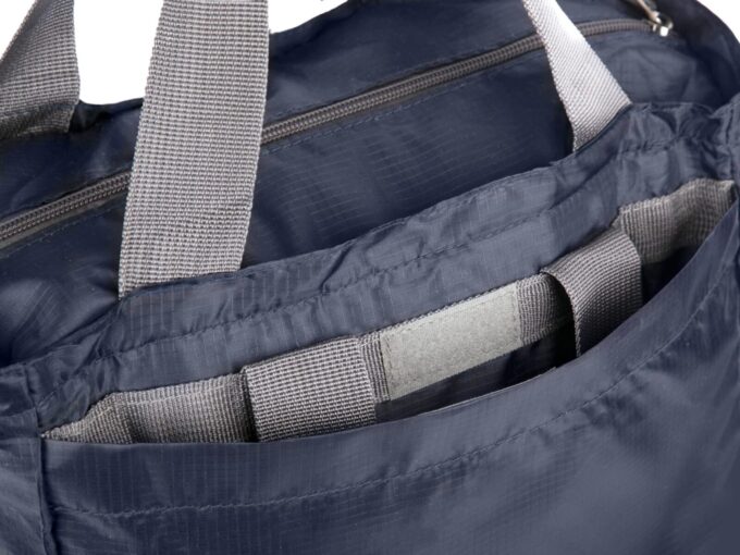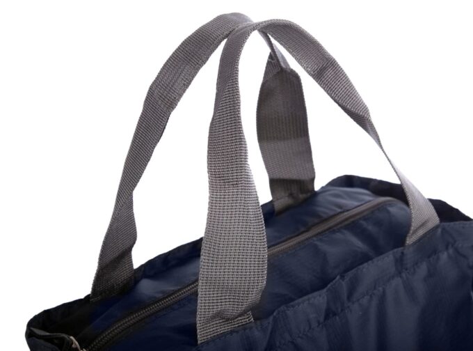 - Torba składa się do małej saszetki, którą możemy nosić w małej torebce i w razie potrzeby rozłożyć do dużej torby z możliwością noszenia w ręce lub na plecach.