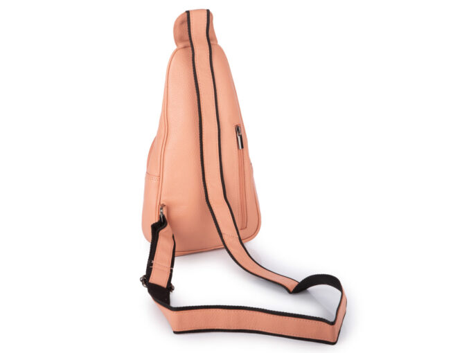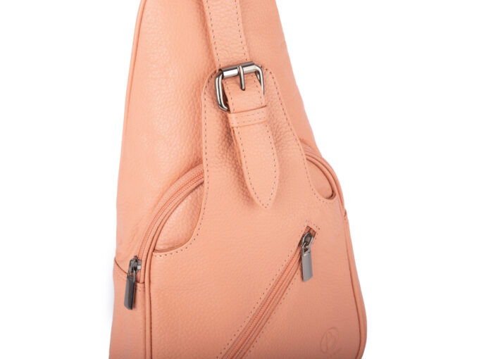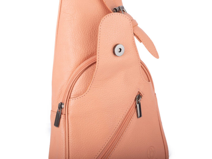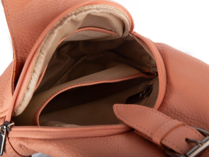 - Elegancki i starannie wykonany, skórzany, plecak damski na jedno ramię w pięknym kolorze brzoskwiniowym.