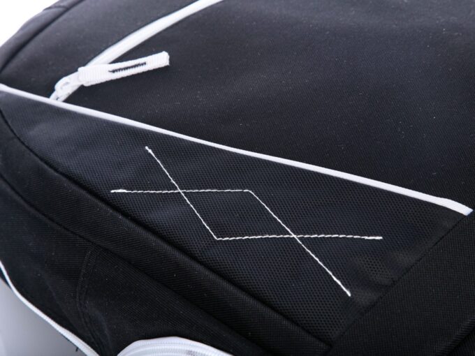 - UWAGA! – Plecak występuje w dwóch wersjach – różni się jedynie bocznym wzorkiem z nitki i poziomym zamkiem z przodu w wersji czarnej lub białej (jak na zdjęciu).
