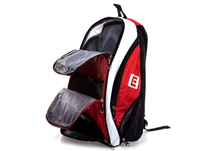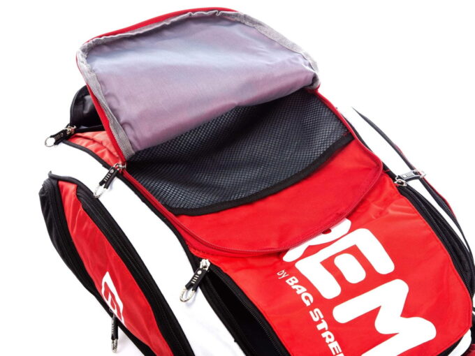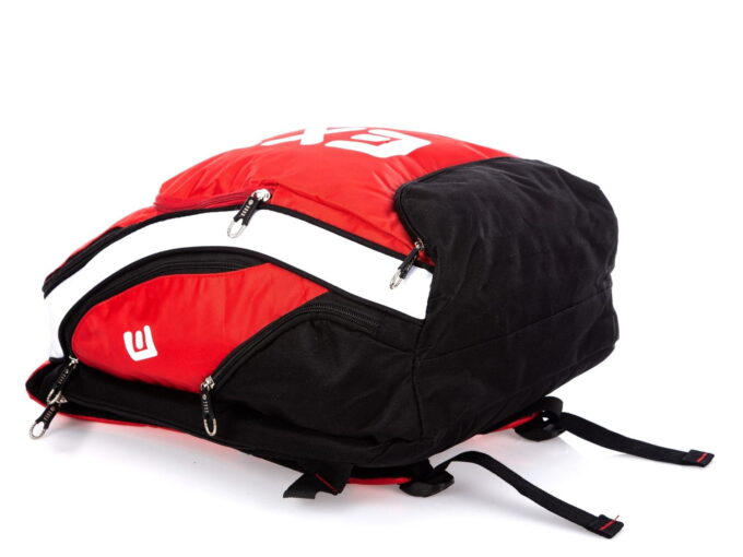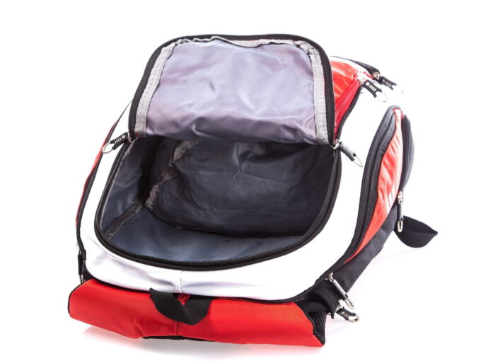 Plecak na siłownię w intensywnym kolorze czerwonym z akcentami w kolorach białym i czarnym. Z myślą o siłowni – plecak, w dolnej części, posiada oddzielną komorę przeznaczoną na buty treningowe. Pełna specyfikacja ⬇
