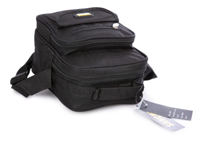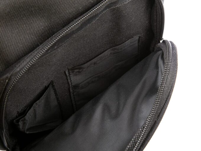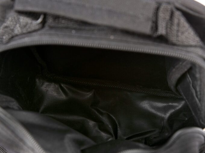- Na niej umieszczono małą kieszeń zamykaną na klapkę z rzepem, oraz dodatkową kieszonkę zapinaną na suwak.