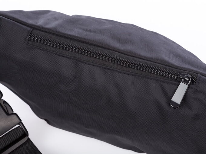 Pojemna saszetka na brzuch typu biodrówka w kolorze czarnym. Saszetka jest bardzo lekka oraz pojemna, posiada z przodu dwie kieszonki zapinane na zamki błyskawiczne. Z pewnością zaspokoi wymagania osób uprawiających dużo sportów takich jak bieganie czy jazda na rowerze. Saszetka bez trudu pomieści portfel, dokumenty, klucze, telefon i zostanie jeszcze sporo wolnego miejsca. Wykonana została z wytrzymałego materiału (poliester). Najcenniejsze przedmioty można schować w dodatkowej, zapinanej na zamek błyskawiczny kieszonce ukrytej wewnątrz saszetki.
