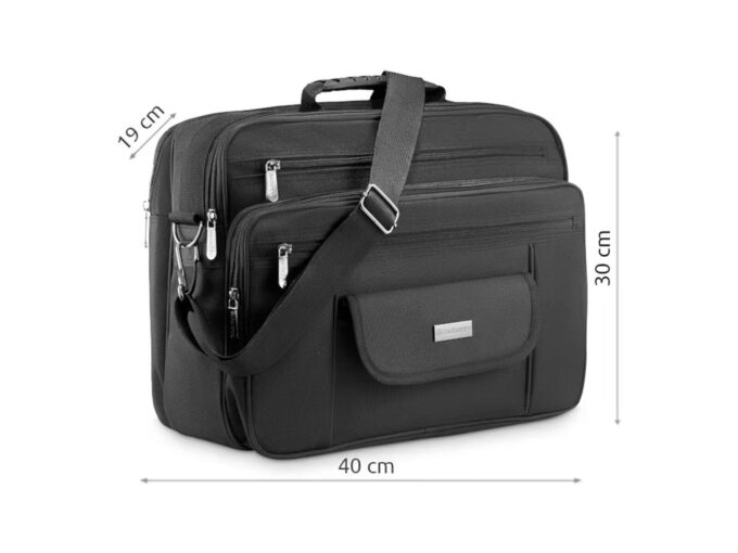 - Torba posiada dwie pojemne, zapinane na zamki błyskawiczne, komory główne, które pomieszczą bez problemu dokumenty w formacie A4.