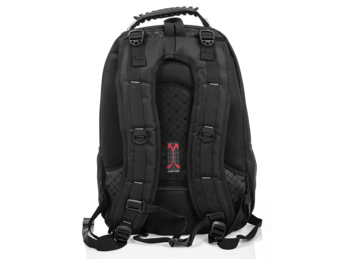 - Tył plecaka wyłożony grubą oraz miękką gąbką w technologii AirFlow ułatwiającą odprowadzanie potu.