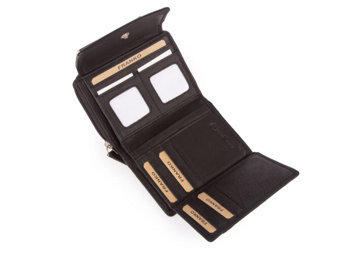 Pojemny czarny portfel damski Franko skórzany z ochroną kart RFID