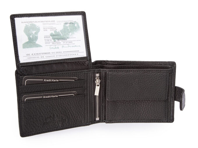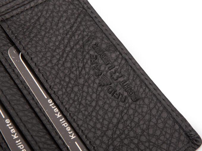 - Portfel z ochroną RFID blokujacą dostęp do kart zbliżeniowych znajdujących się w środku.