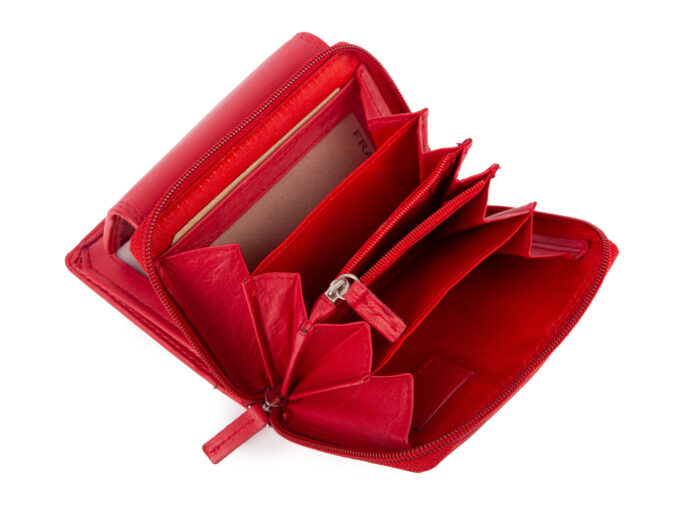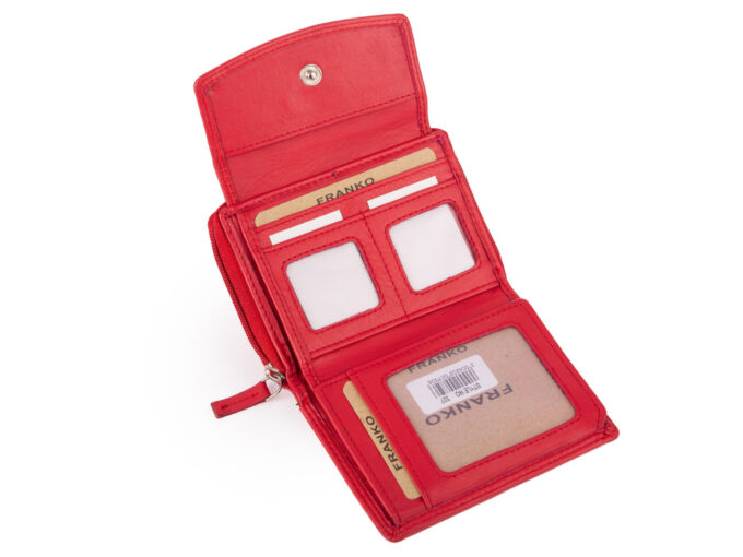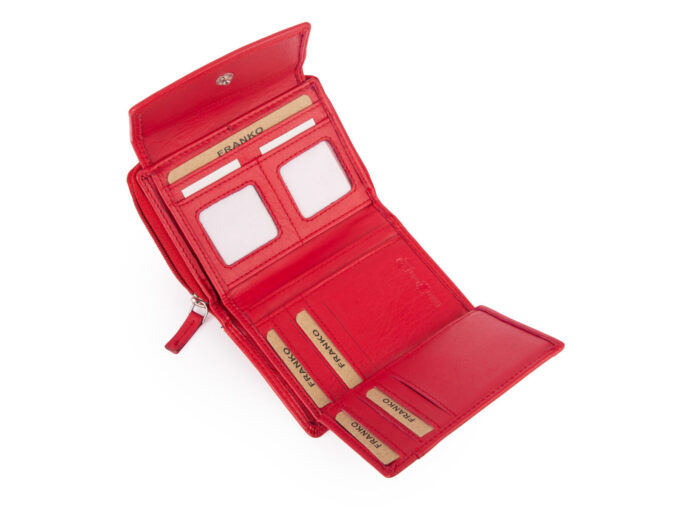 Pojemny czerwony portfel damski Franko skórzany z ochroną kart RFID