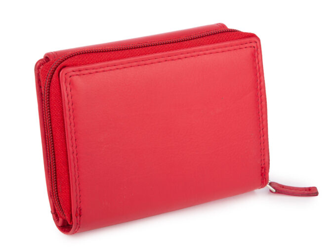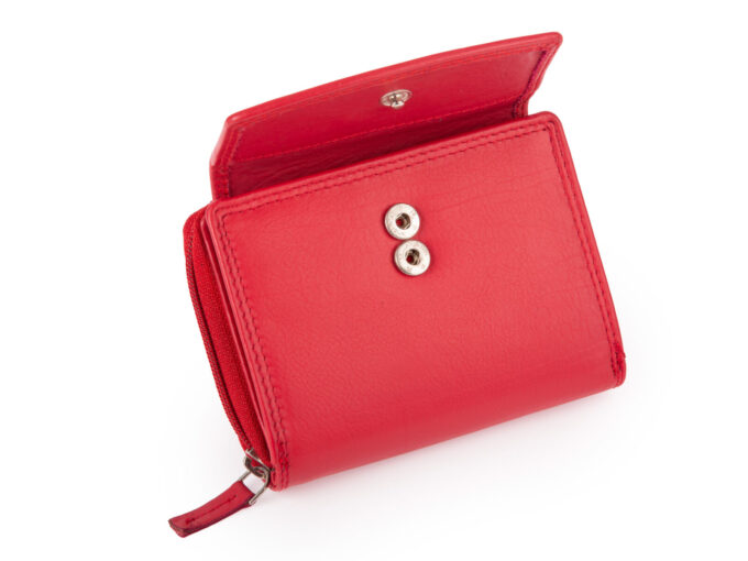 - Czerwony, pojemny portfel damski uszyty z gładkiej, miękkiej skóry naturalnej.
