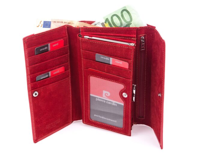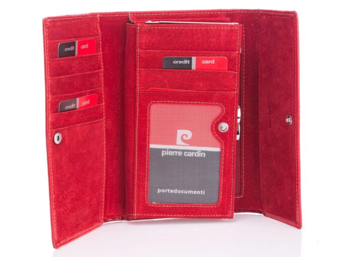 Pojemny elegancki portfel skórzany czerwony PIERRE CARDIN