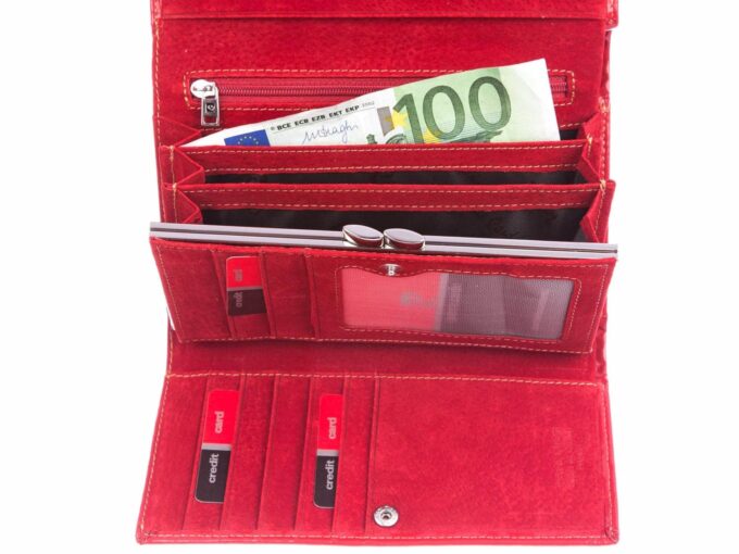 - Wzdłuż portfela głęboka i pojemna kieszonka na banknoty