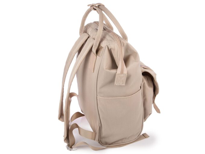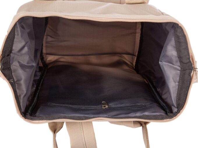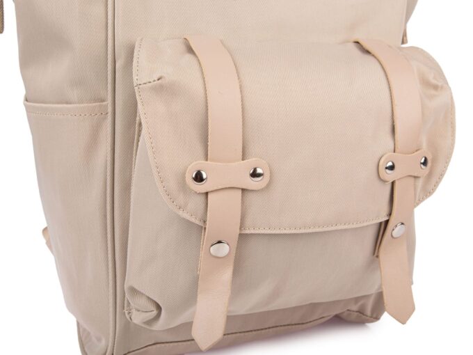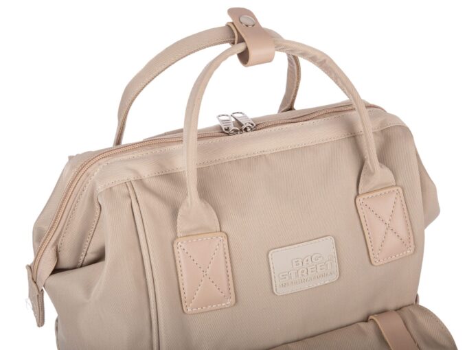 - Jasnobeżowy, pojemny plecak damski materiałowy niemieckiej marki Bag Street.