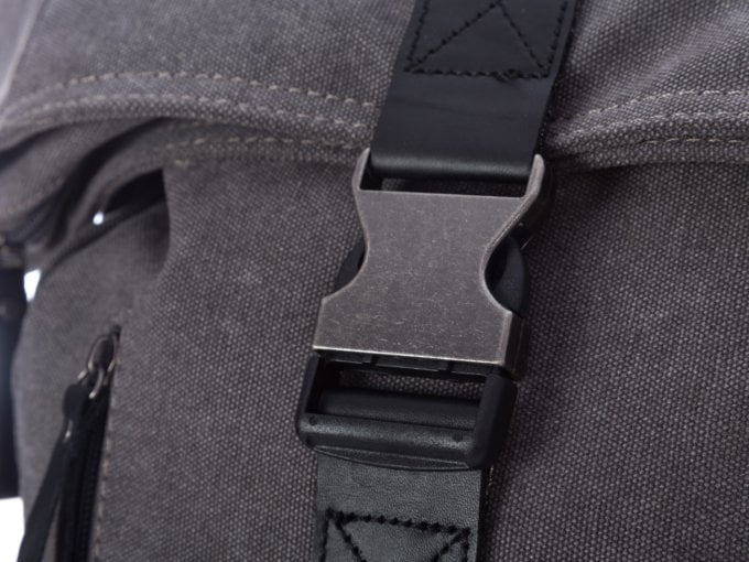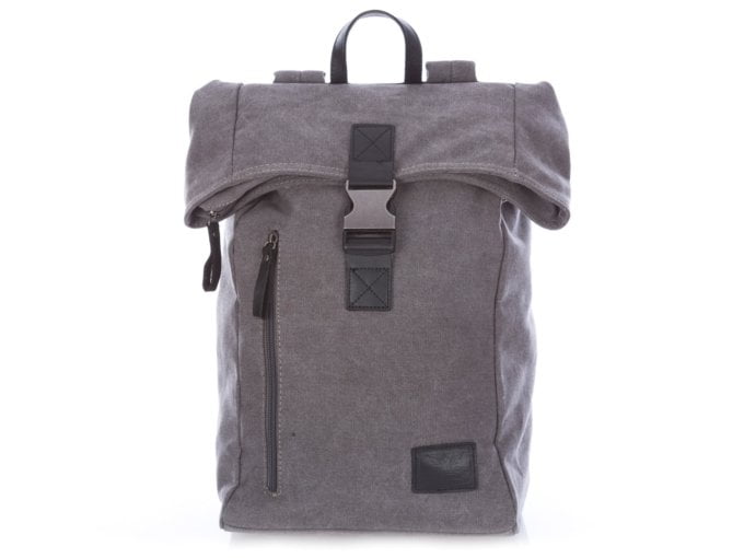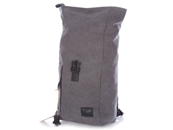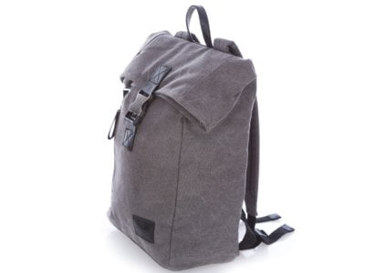 • Pojemny plecak trekkingowy płócienny (canvas) ze skórą naturalną, szary